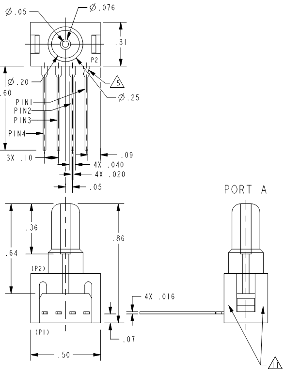 1.Mô tả Dải áp suất đo: ±1 psi Áp suất tối đa tác động lên cảm biến: 20 psi. Điện áp cung cấp: 10 Vdc typ., 16 Vdc max. Có điều chỉnh ngõ ra. Thời gian đáp ứng: 1 ms max. Loại port: Thẳng. Điện áp ngõ ra tại điểm có áp suất không: 0 mV typ. Trở kháng ngõ vào: 5.5 kOhm min., 7.5 kOhm typ., 11.5 kOhm max. Trở kháng ngõ ra: 1.5 kOhm min., 2.5 kOhm typ., 3.0 kOhm max. Nhiệt độ hoạt động: -40 °C to 85 °C [-40 °F to 185 °F] Khối lượng: 2 g [0.07 oz]. 2.Kích thước ==>Chọn các mã sản phẩm khác của Series 26PC