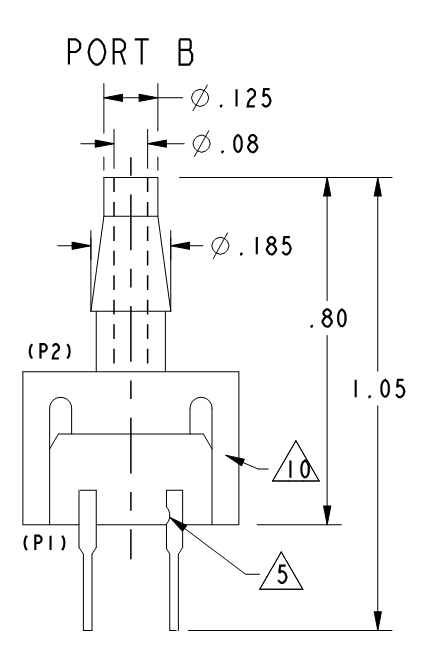 1.Mô tả Dải áp suất đo: ±15 psi Áp suất tối đa tác động lên cảm biến: 45 psi. Điện áp cung cấp: 10 Vdc typ., 16 Vdc max. Thời gian đáp ứng: 1 ms max. Loại port: Có ngạnh. Điện áp ngõ ra tại điểm có áp suất không: 0 mV typ. Trở kháng ngõ vào: 5.5 kOhm min., 7.5 kOhm typ., 11.5 kOhm max. Trở kháng ngõ ra: 1.5 kOhm min., 2.5 kOhm typ., 3.0 kOhm max. Nhiệt độ hoạt động: -40 °C to 85 °C [-40 °F to 185 °F] Khối lượng: 2 g [0.07 oz] 2.Kích thước ==>Chọn các mã sản phẩm khác của Series 26PC