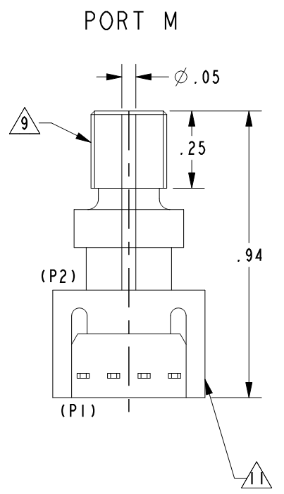 1.Mô tả Dải áp suất đo: ±100 psi Áp suất tối đa tác động lên cảm biến: 200 psi. Điện áp cung cấp: 10 Vdc typ., 16 Vdc max. Có điều chỉnh ngõ ra. Thời gian đáp ứng: 1 ms max. Điện áp ngõ ra tại điểm có áp suất không: 0 mV typ. Trở kháng ngõ vào: 5.5 kOhm min., 7.5 kOhm typ., 11.5 kOhm max. Trở kháng ngõ ra: 1.5 kOhm min., 2.5 kOhm typ., 3.0 kOhm max. Nhiệt độ hoạt động: -40 °C to 85 °C [-40 °F to 185 °F]. Khối lượng: 2 g [0.07 oz]. 2.Kích thước ==>Chọn các mã sản phẩm khác của Series 26PC