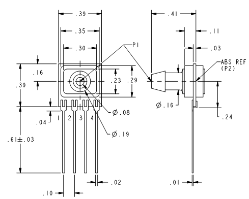 1.Mô tả Dải áp suất đo: 2.0 psia to 30.0 psia. Áp suất tối đa áp suất có thể chịu: 90 psi max. Điện áp cung cấp: 3.0 Vdc min., 12.0 Vdc typ., 16.0 Vdc max. Điều chỉnh ngõ ra: có. Loại port: Có ngạnh. Điện áp điểm không: 0 mV typ. Trở kháng ngõ vào: 5.0 kOhm min. Trở kháng ngõ ra: 3.0 kOhm typ. Nhiệt độ hoạt động: -25 °C to 85 °C [-13 °F to 185 °F]. 2.Kích thước: ==>Chọn các mã sản phẩm khác của Series CPC