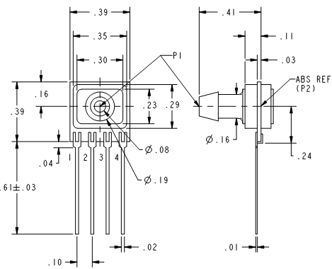 1.Mô tả Dải áp suất đo: 2.0 psia to 60.0 psia. Áp suất tối đa áp suất có thể chịu: 180 psi max. Điện áp cung cấp: 3.0 Vdc min., 12.0 Vdc typ., 16.0 Vdc max. Điều chỉnh ngõ ra: có. Loại port: Có ngạnh. Điện áp điểm không: 0 mV typ. Trở kháng ngõ vào: 5.0 kOhm min. Trở kháng ngõ ra: 3.0 kOhm typ. Nhiệt độ hoạt động: -25 °C to 85 °C [-13 °F to 185 °F]. 2.Kích thước: ==>Chọn các mã sản phẩm khác của Series CPC
