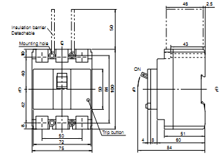 1.. Thiết bị đóng ngắt MCCB Fuji BW100EAGMCCB Fuji BW100EAG.Dãy dòng điện: 100A.Dòng định mức: 50, 60, 63, 75, 100 A.Số cực: 2, 3 P.Dòng ngắn mạch 380V AC: 1.5/1 kA.Tiêu chuẩn: IEC 60947-2, EN 60947-2, JIS C 8201-2-1.2.Kích Thước.Hai cực:Ba cực:Chọn các sản phẩm khác của MCCB Fuji G-TWIN
